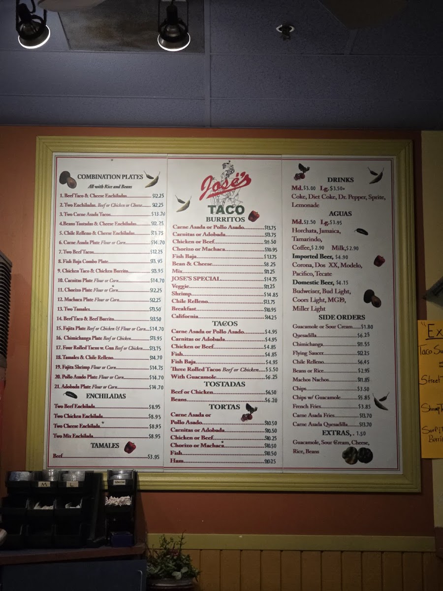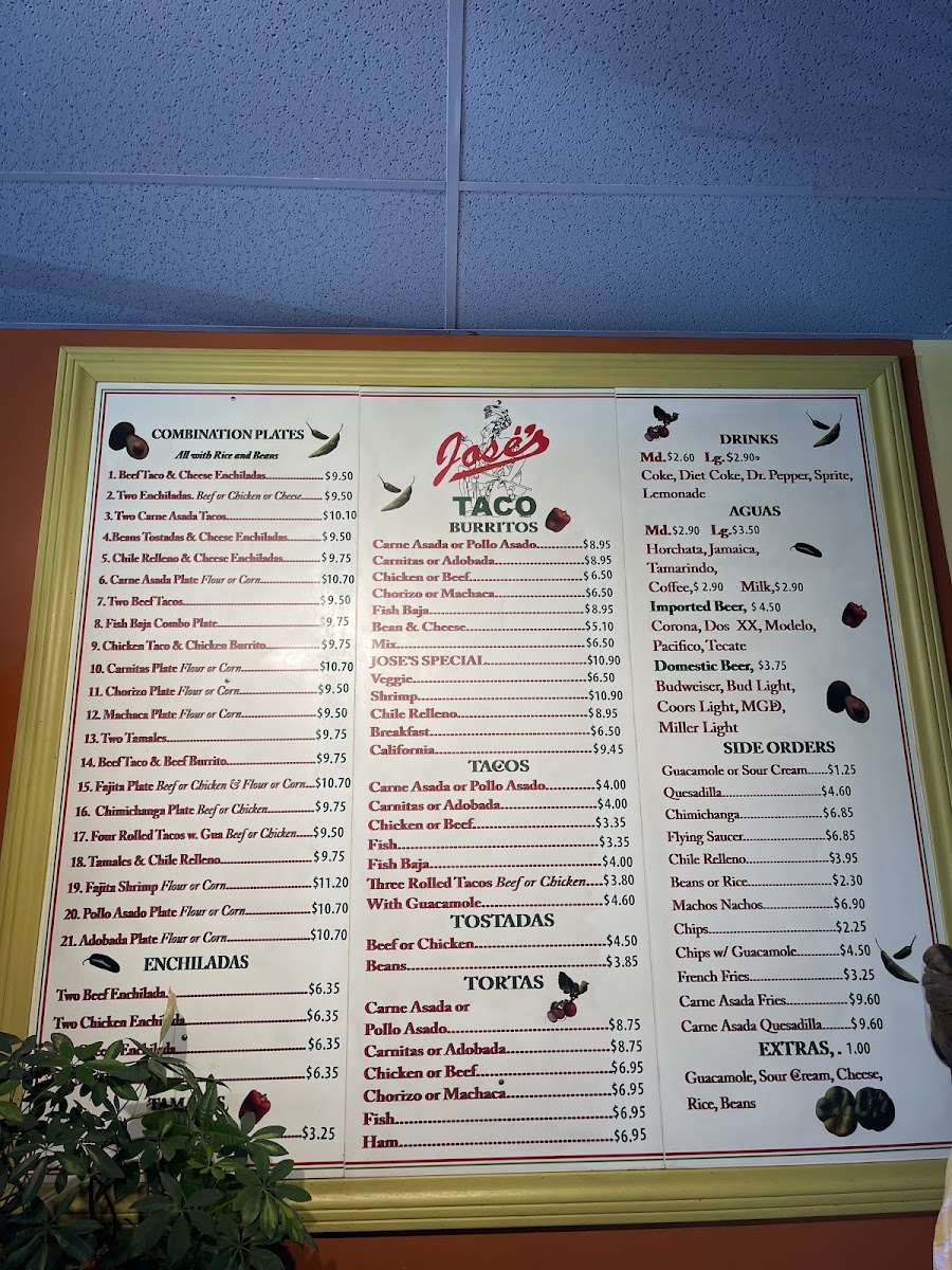 Jose's Taco Shop offers a straightforward and approachable menu centered on classic Mexican flavors. The dishes are designed as satisfying, casual bites that fit effortlessly into any part of the day—whether it's a quick lunch, a relaxed dinner, or a late-afternoon craving for something warm and filling.